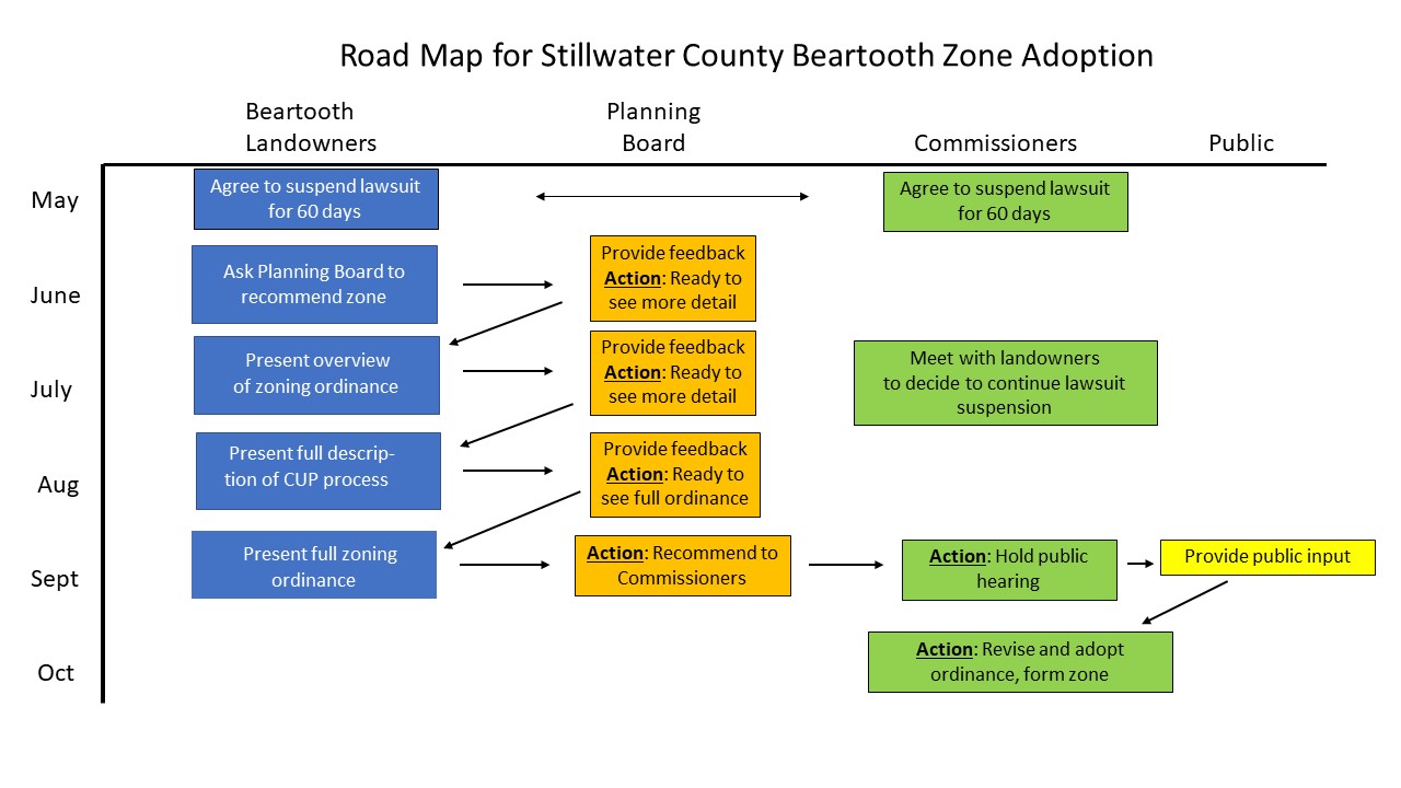 July 23 is the 60-day deadline initially set by the court for the pause in the lawsuit between the Beartooth Front Coalition and Stillwater County. As long as the parties feel progress is being made, they will seek to continue working with the board on the issue rather than through the courts.