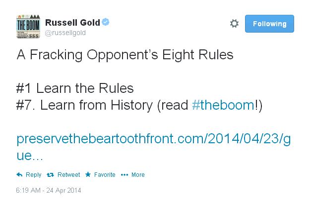 Last note for the week: Our recent guest post from Ralph Kisberg of Pennsylvania, who provided hard-learned lessons about fighting against expanded oil and gas drilling, was picked up on Twitter by Russell Gold, senior energy reporter for the Wall Street Journal and author of the best selling book The Boom: How Fracking Ignited the American Energy Revolution and Changed the World. A number of his 5000 followers checked in to the blog to take a look around, a welcome (if temporary) exposure to the larger world.
