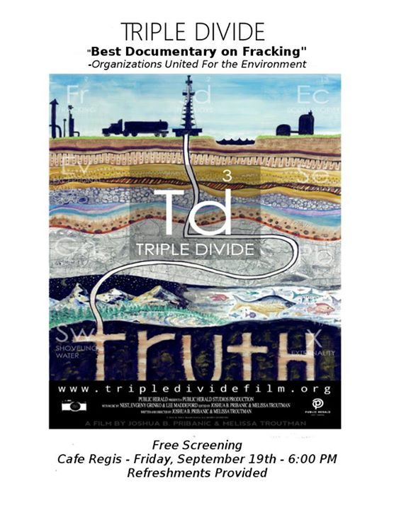 Followers of this blog will be pleased to know about  a special free screening of the documentary film Triple Divide at the Cafe Regis in Red Lodge this Friday, September 19 at 6:00pm.
