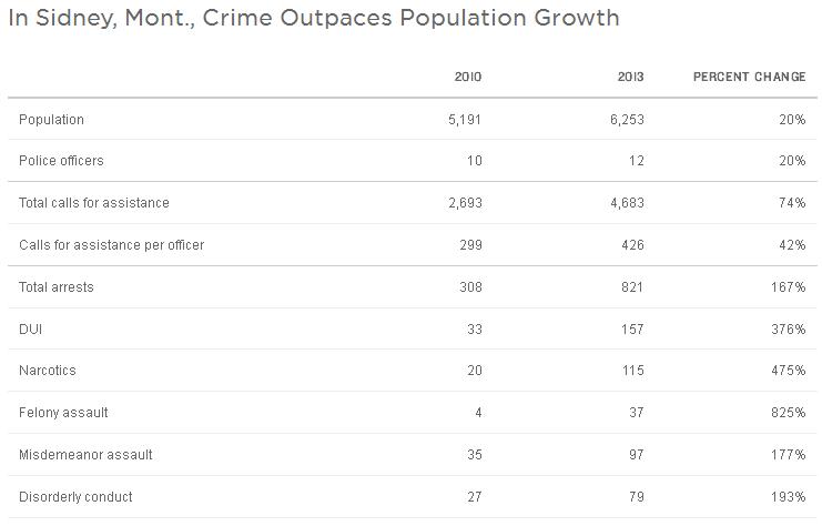 Last year we reported on Sidney’s unmet infrastructure needs as the town was riding the upwards Bakken boom. Growth had taxed the city’s infrastructure to bursting. A summary from a Montana Public Radio report in late 2013: