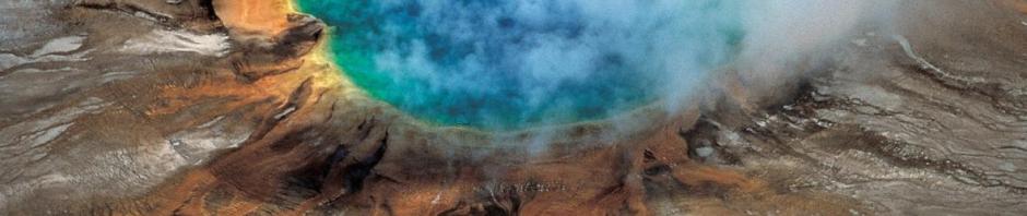 The richly-colored Yellowstone Grand Prismatic Hot Spring was caused by the Yellowstone caldera. Photo: Robert Smith and Lee Siegel.