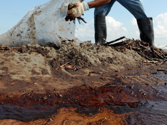 Cleaning up an oil spill on the Blackfeet Reservation in Montana. Without adequate advance notification it is impossible to protect our water. Photo: Associated Press