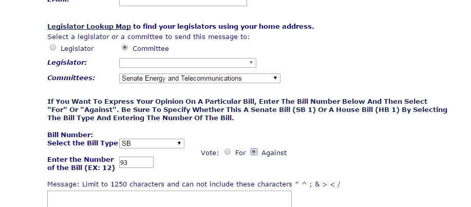 The bill is currently before the Senate Telecommunications and Energy Committee. If it is approved by the committee, it will be voted on by the entire Senate. Please call or write one or more of the Senators who sit on this committee, letting them know you are opposed to the bill because it reduces landowner notification protections.