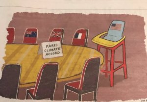 President Trump announced today that the United States will withdraw from the 2015 Paris Agreement, a landmark agreement in which 195 countries, representing 95% of the world’s carbon emissions, agreed to voluntarily reduce emissions to control global warming. The US joins Syria and Nicaragua as the only three nations in the world not participating. Nice company.