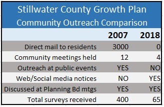 This lackluster effort could not be classified as outreach at all. A web-only strategy with no direct personal notifications only reaches a small number of people. How many of you went to the Growth Plan page on the Stillwater County web site during the summer? I didn’t think so.